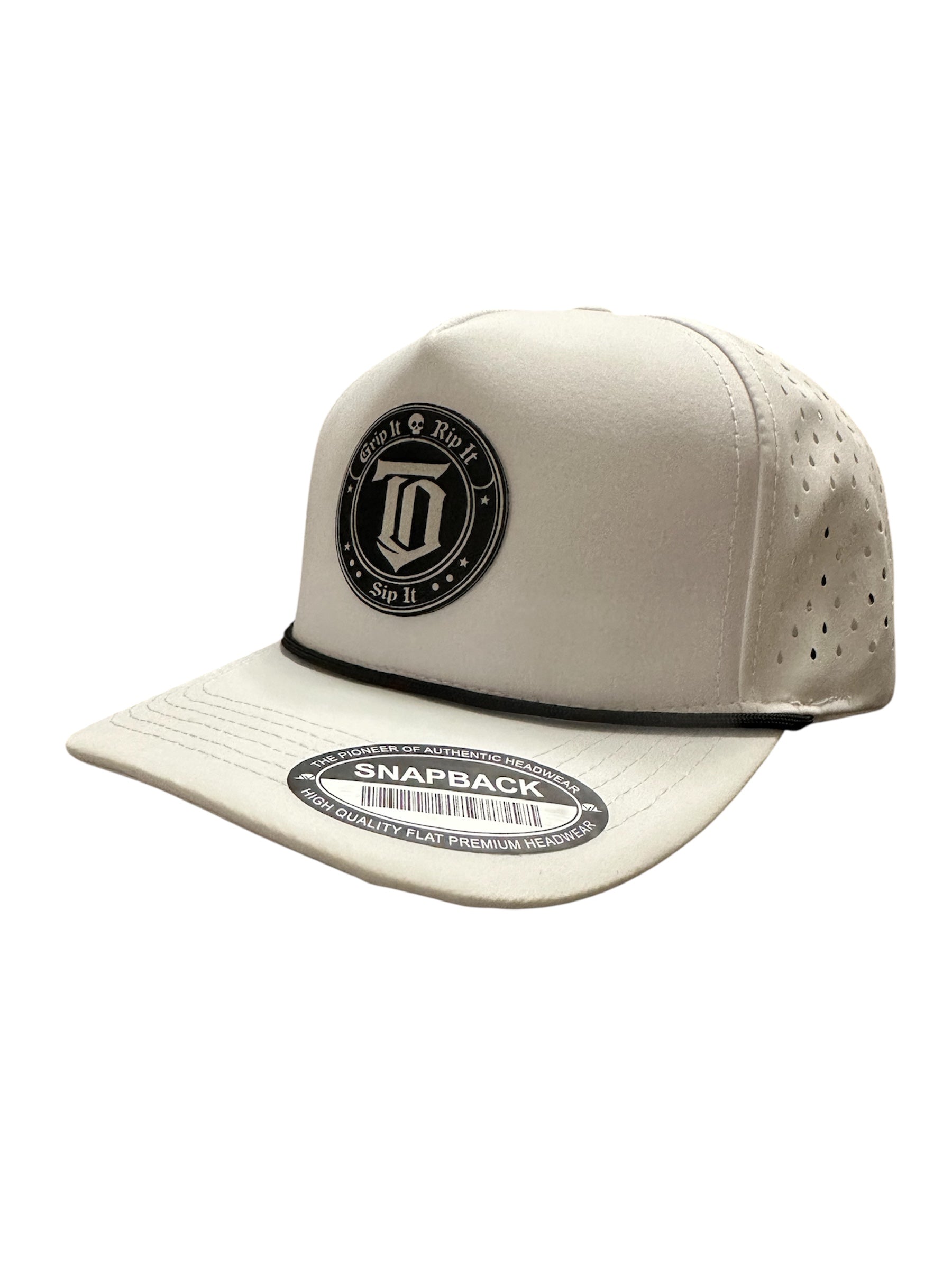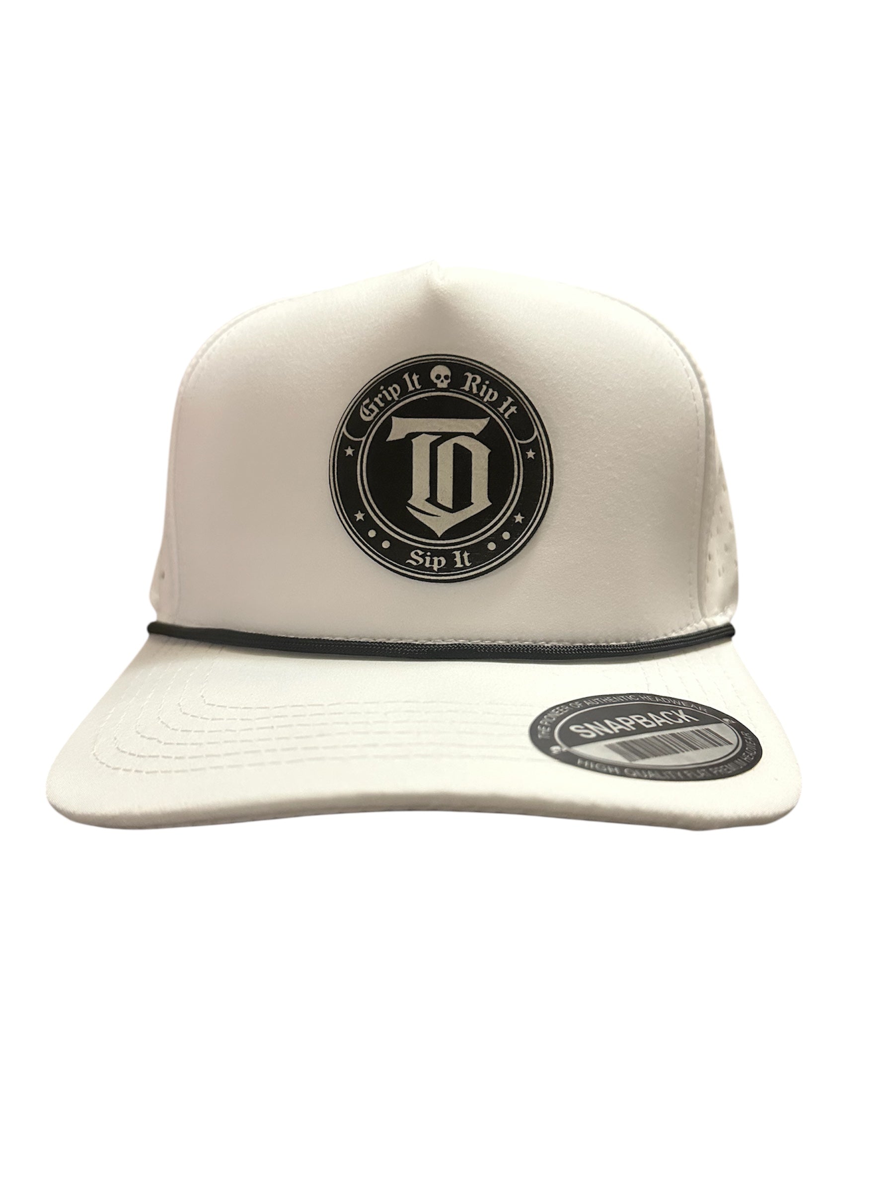 Leatherette, roped hat.